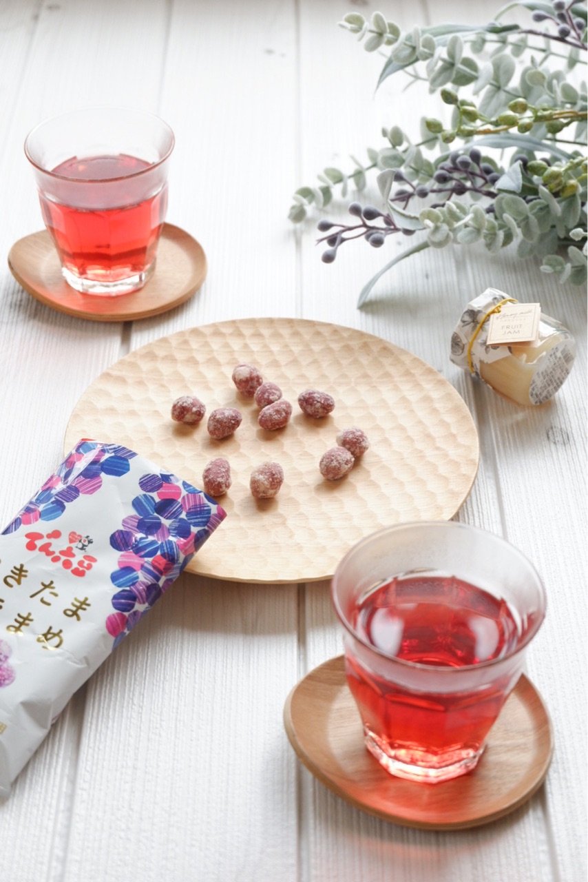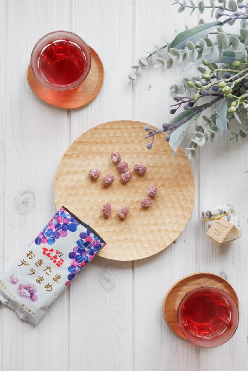 山形置賜産デラウェア果汁使用のでん六豆でティータイム♪