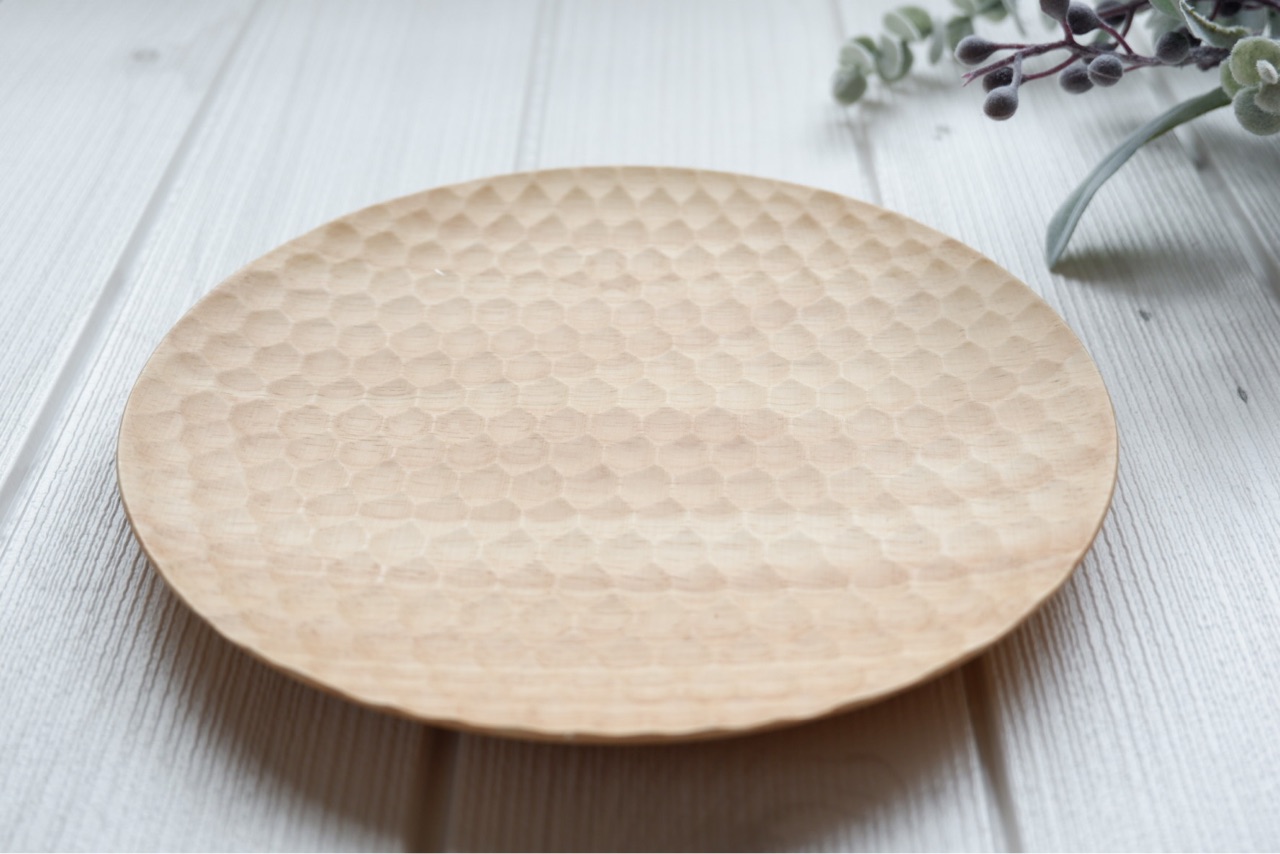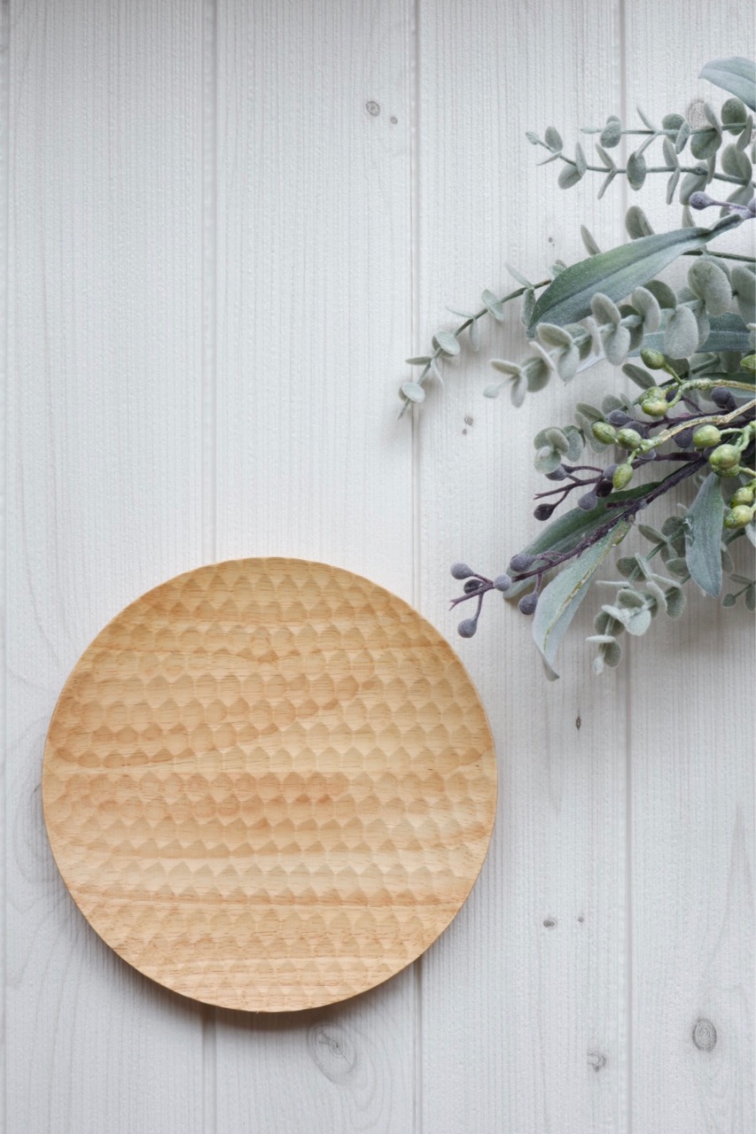 ウッドプレートです。凹凸のある天然木のプレートはどんなお料理にでもコーディネートできる、オシャレさをアップしてくれるアイテム。使いやすい、ほどよい大きさなので重宝します。プレゼントにも喜んでいただけるシンプルなデザイン。