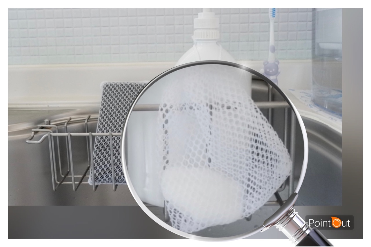 キッチンのこのネットに入れて最後までしっかりと使い切ることに!