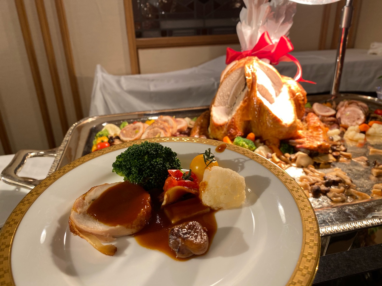 チキンロールもソースも付け合わせのお野菜にマロンまで美味しすぎて