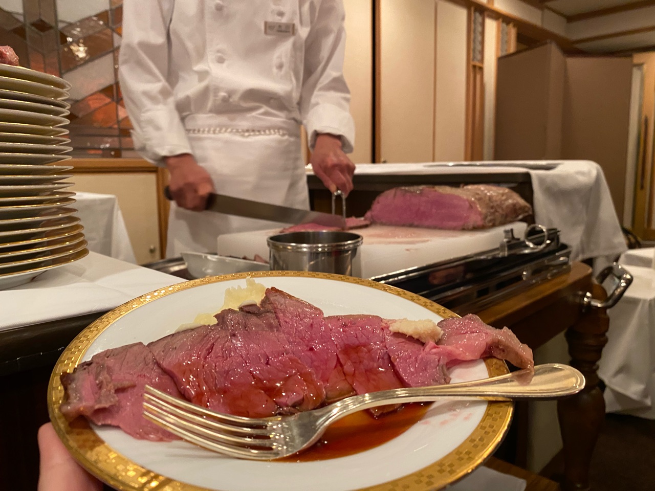 奥でシェフが切り分けているのが・・・