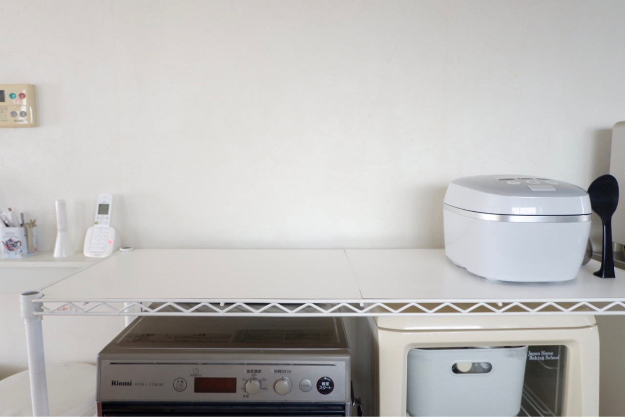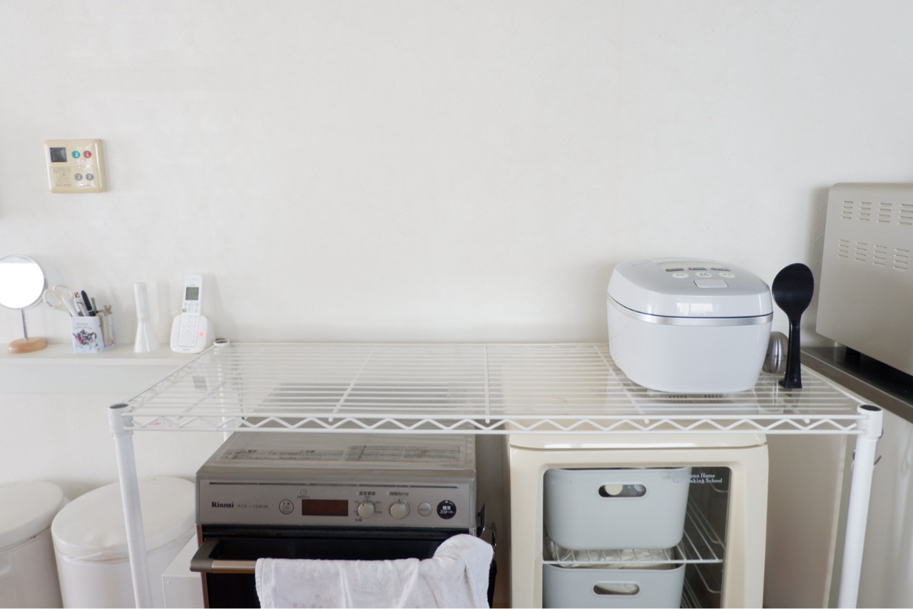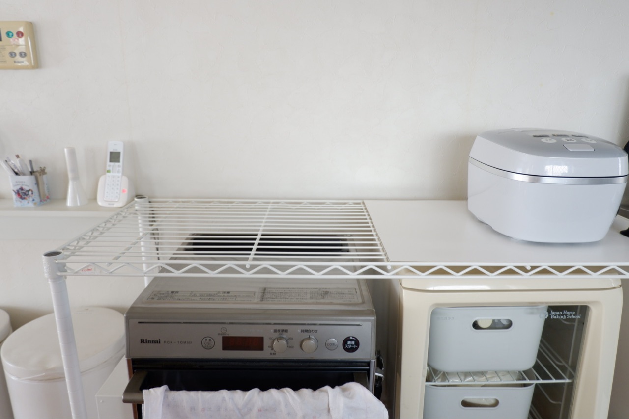 うちのキッチンにある、スチールラックはエレクタのホワイト。