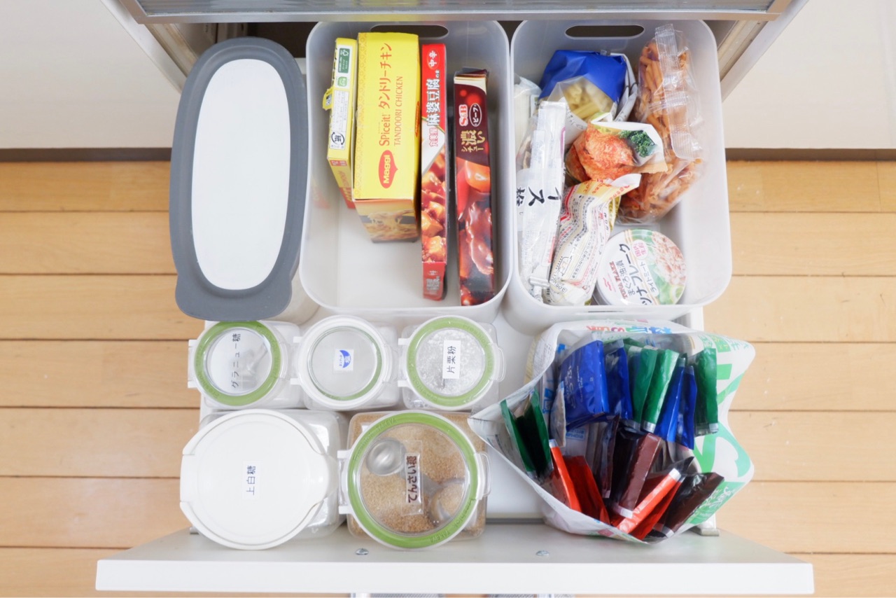 食料品のストックは、キッチンに頻度別に収納してみた!