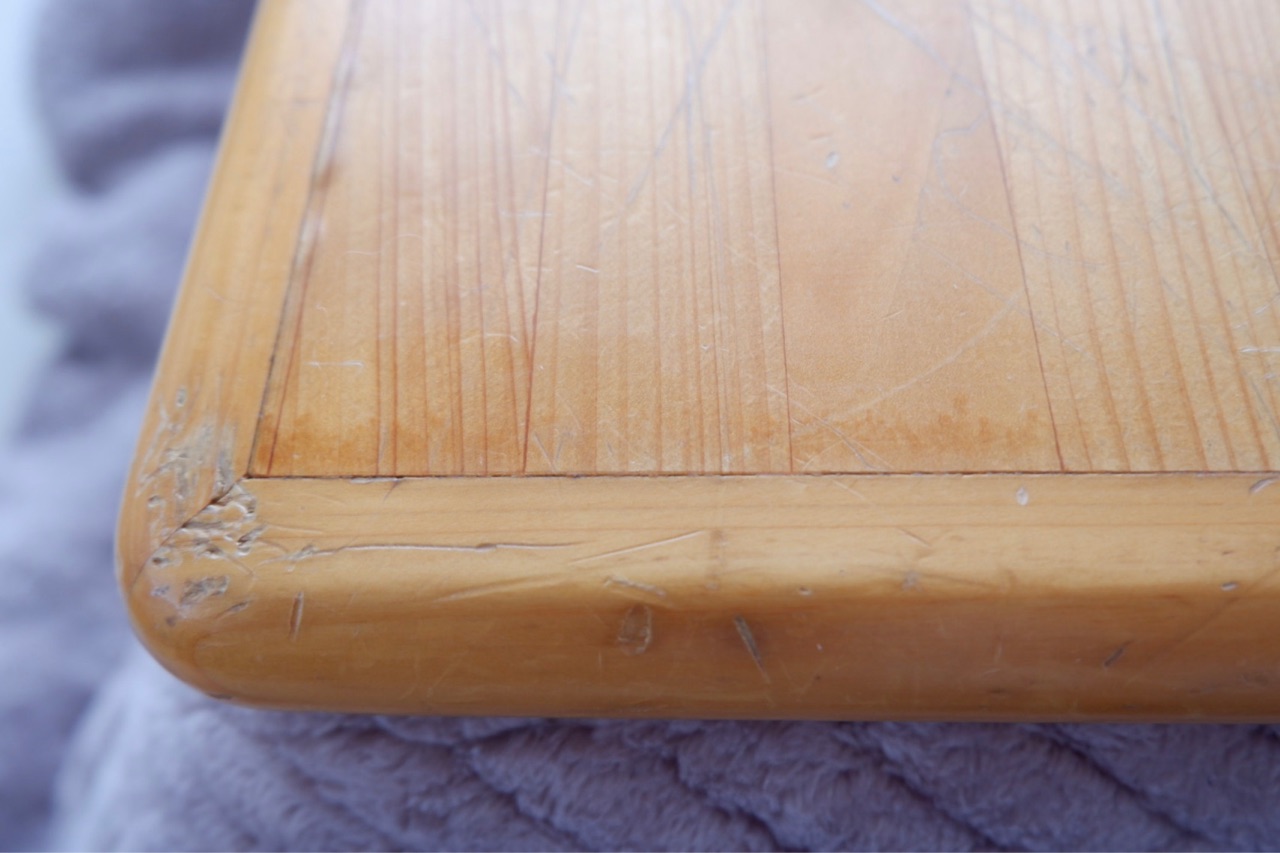 ヒノキ部分が薄いような気がしていたけれど本当に薄かったこたつ天板をサンダー掛けしました♪