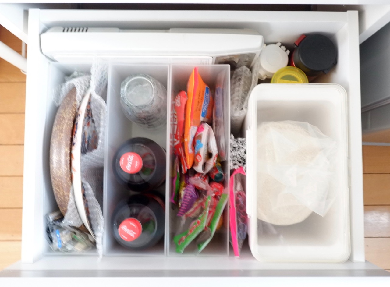 コーラも冷蔵庫に2本(飲みかけ含む)+さらに引き出しに2本備蓄することができます◎