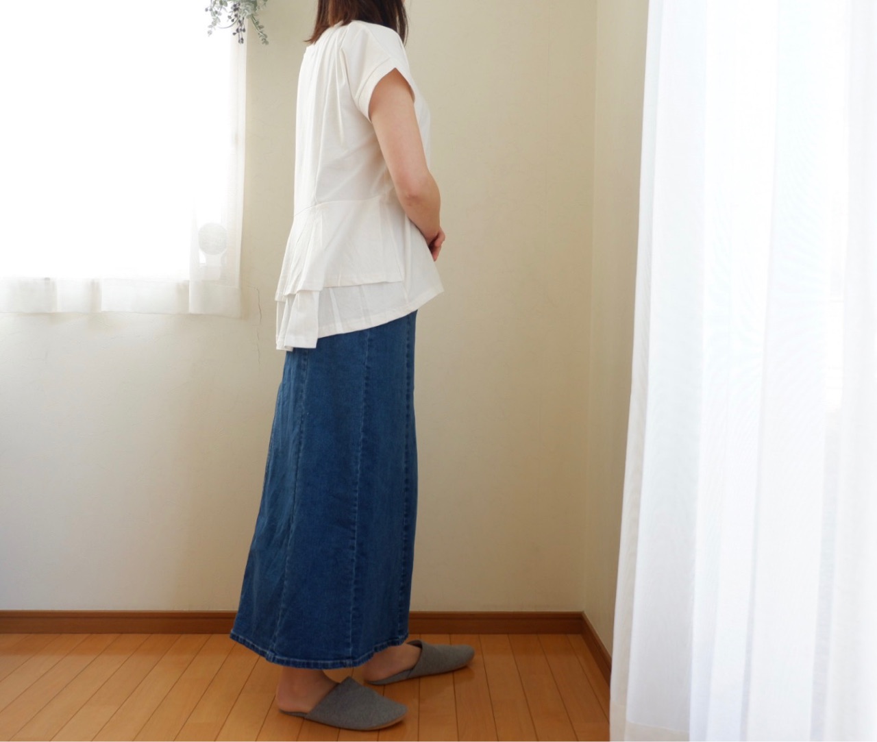 後ろ見頃が長めで、バッグが切り替えでフリル!