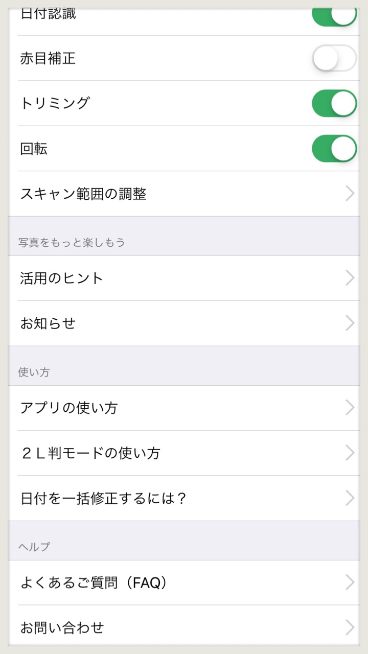 スキャン画面→右上の設定(歯車)を押すとこちらの画面になります。
