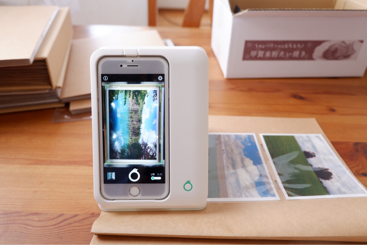omoidoriというスキャン機器にiPhoneをセットして