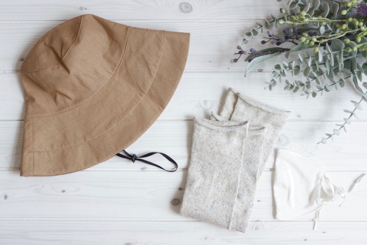 紫外線対策に!大人コーデしやすい帽子&シルクアームカバー。