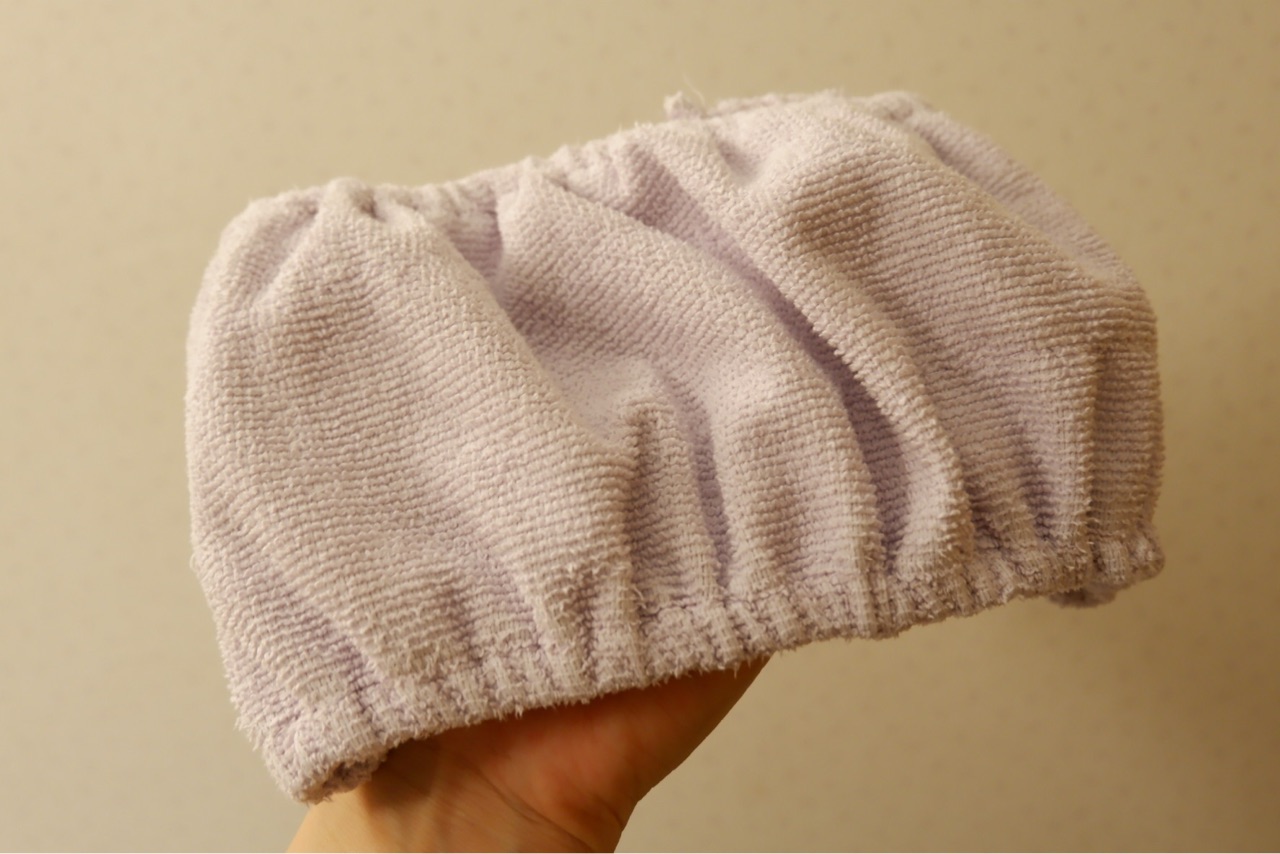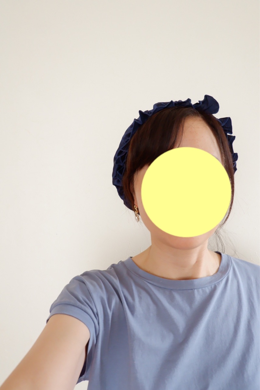 普段は、100均のこちらを髪に巻いて(ターバン風)寝るまで過ごしています。