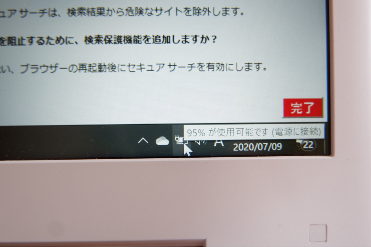 ノートパソコンも「電源に接続」表示がでています◎
