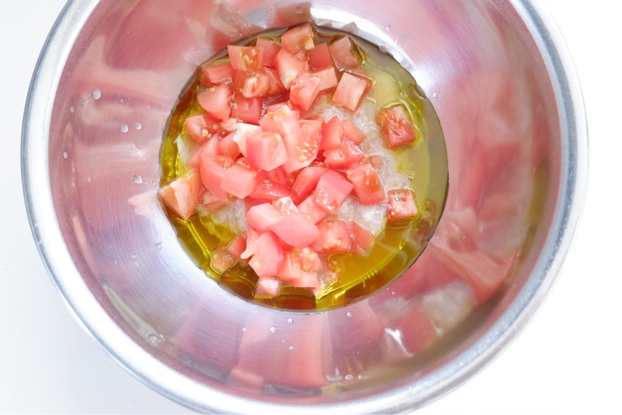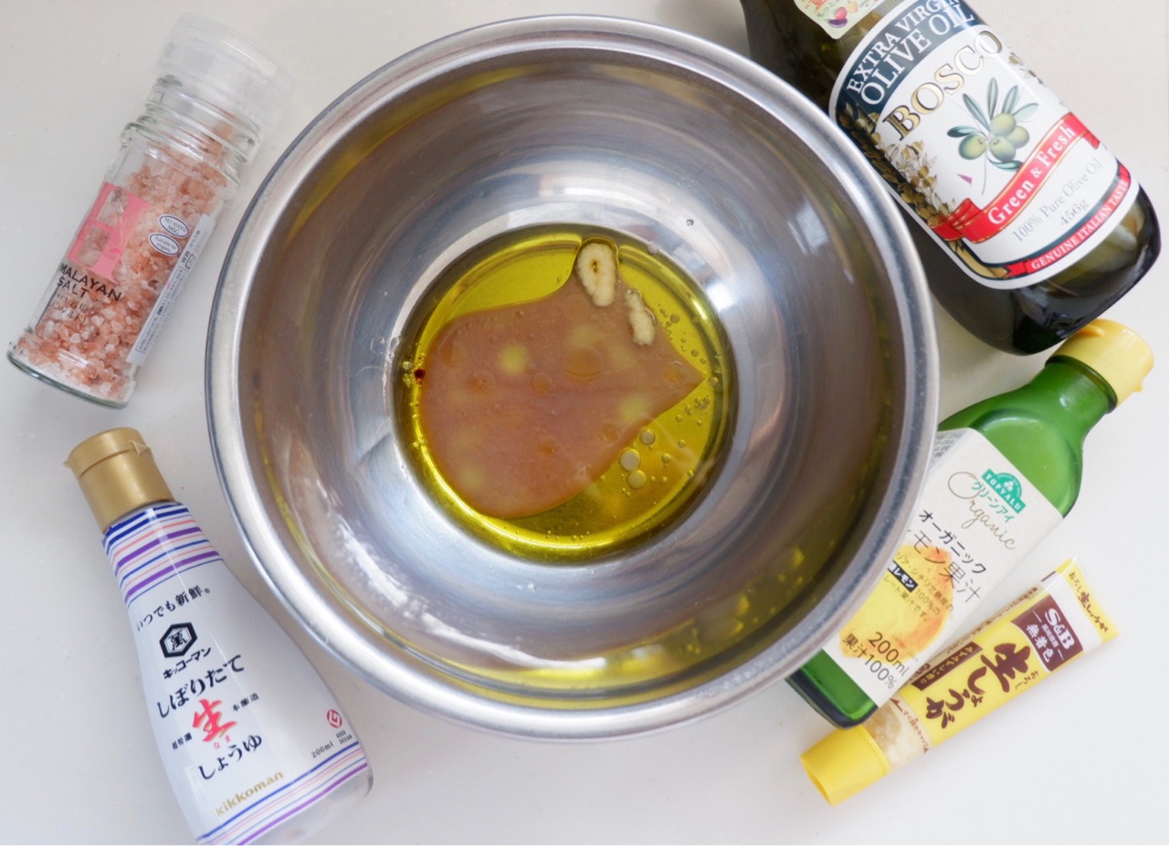 今回は、オリーブオイルとレモン果汁は大さじ2くらい。