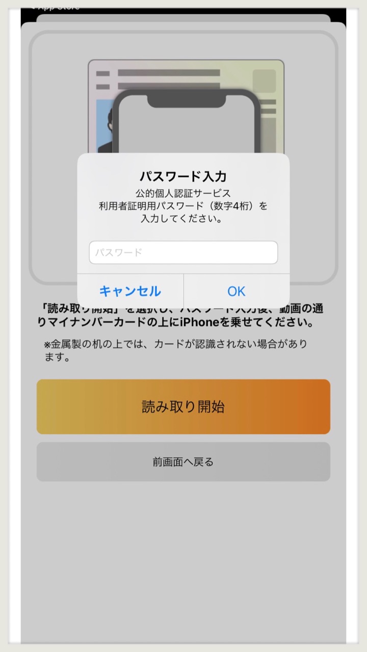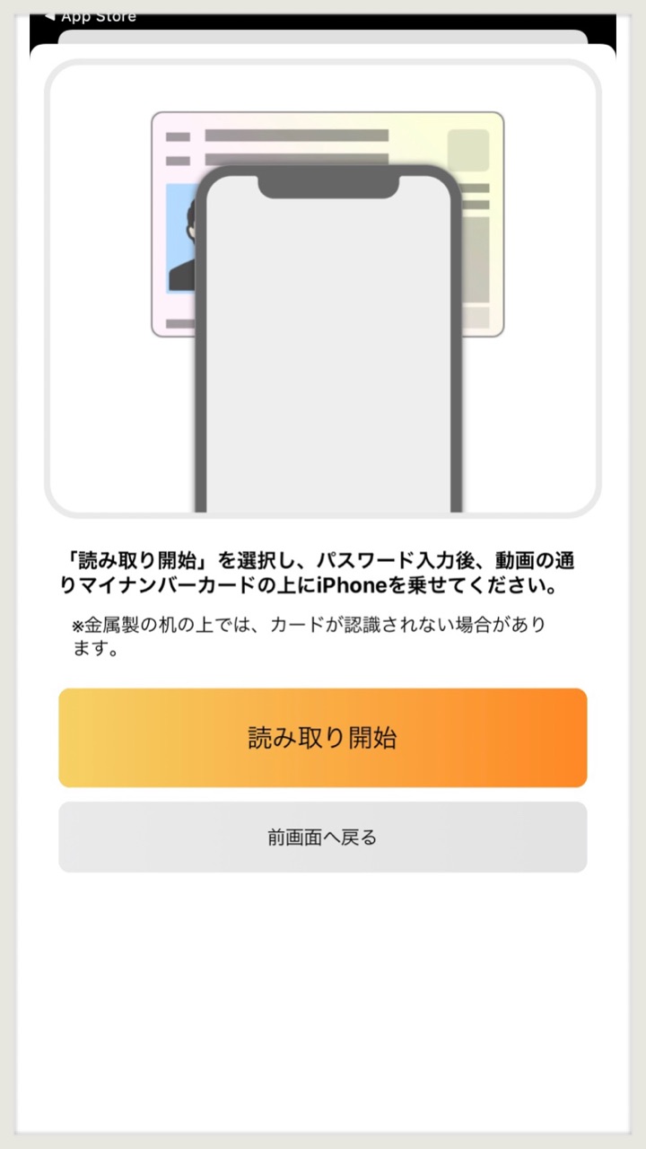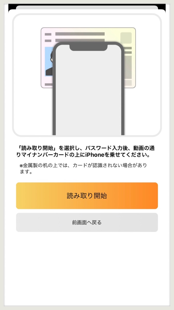 マイナンバーカードを下に置いて「読み取り開始」する!