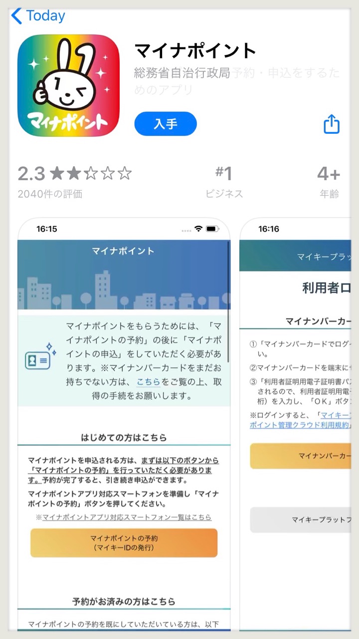 マイナポイントアプリを入手!