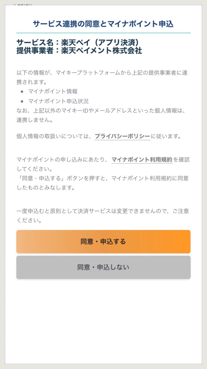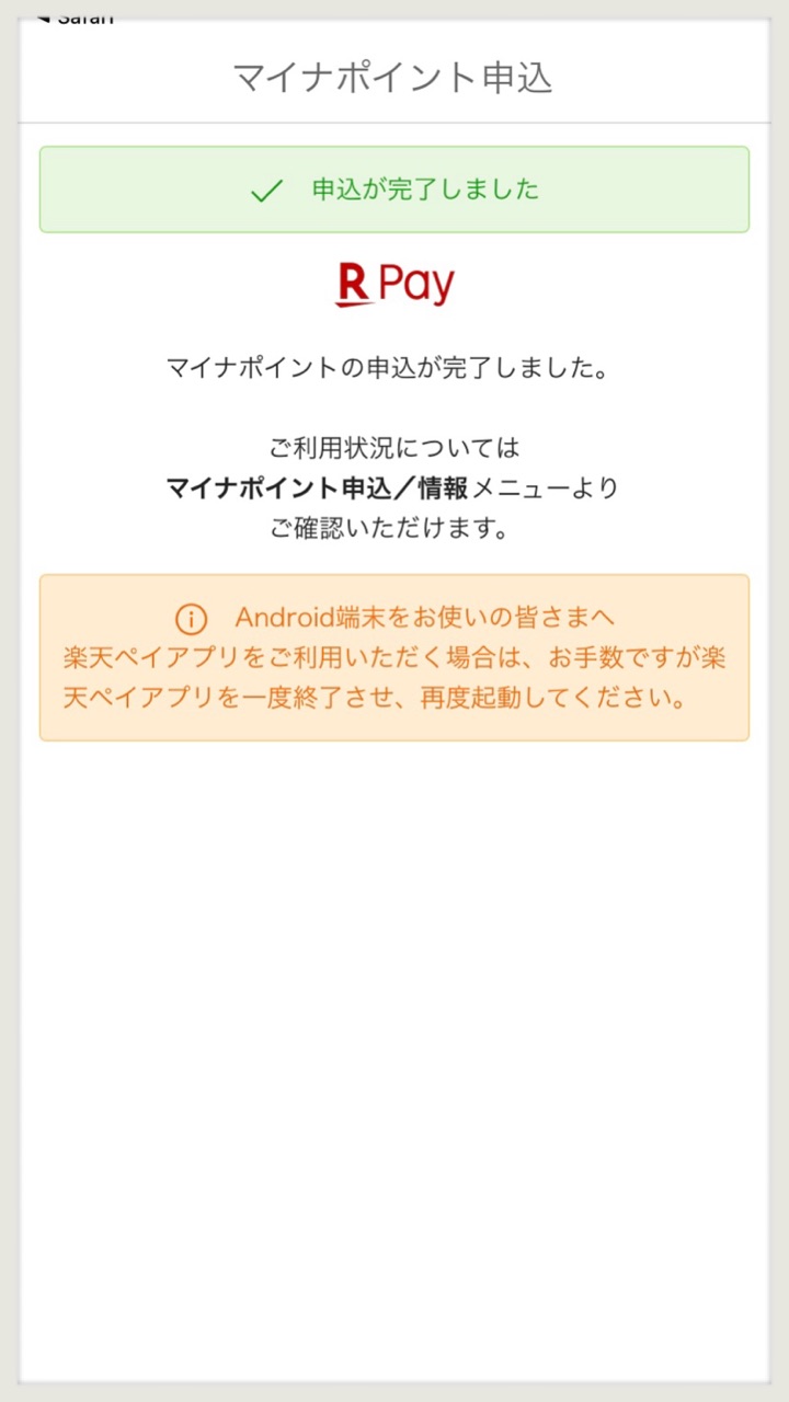 楽天ペイにマイナポイントの申し込み完了です♪