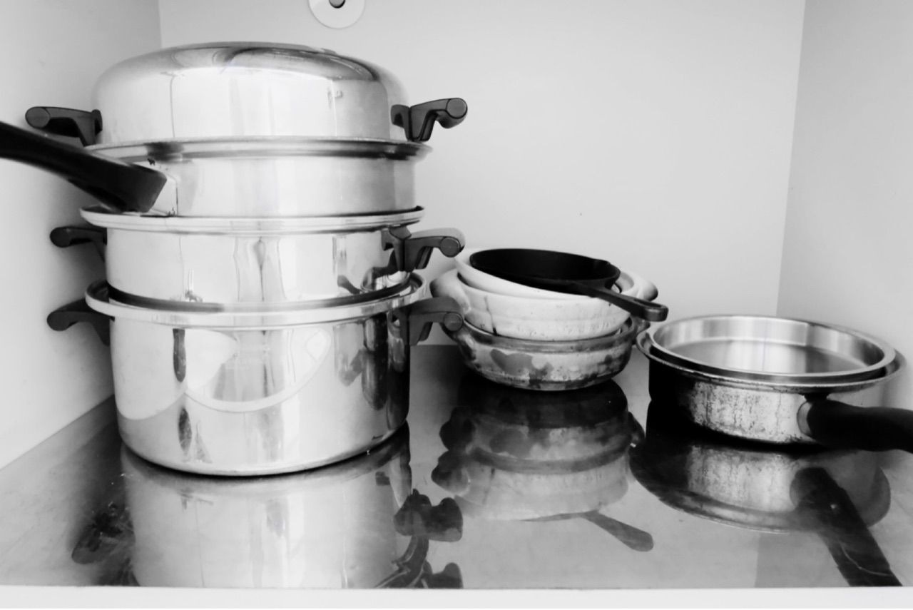 私がよく使う鍋は2~3個ほど。収納を買い足さずにあるもので