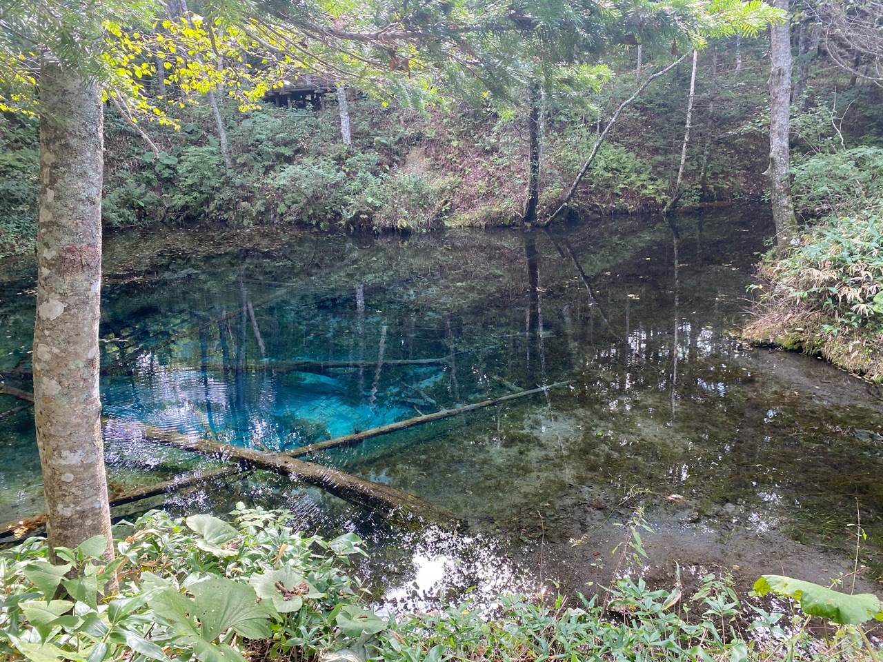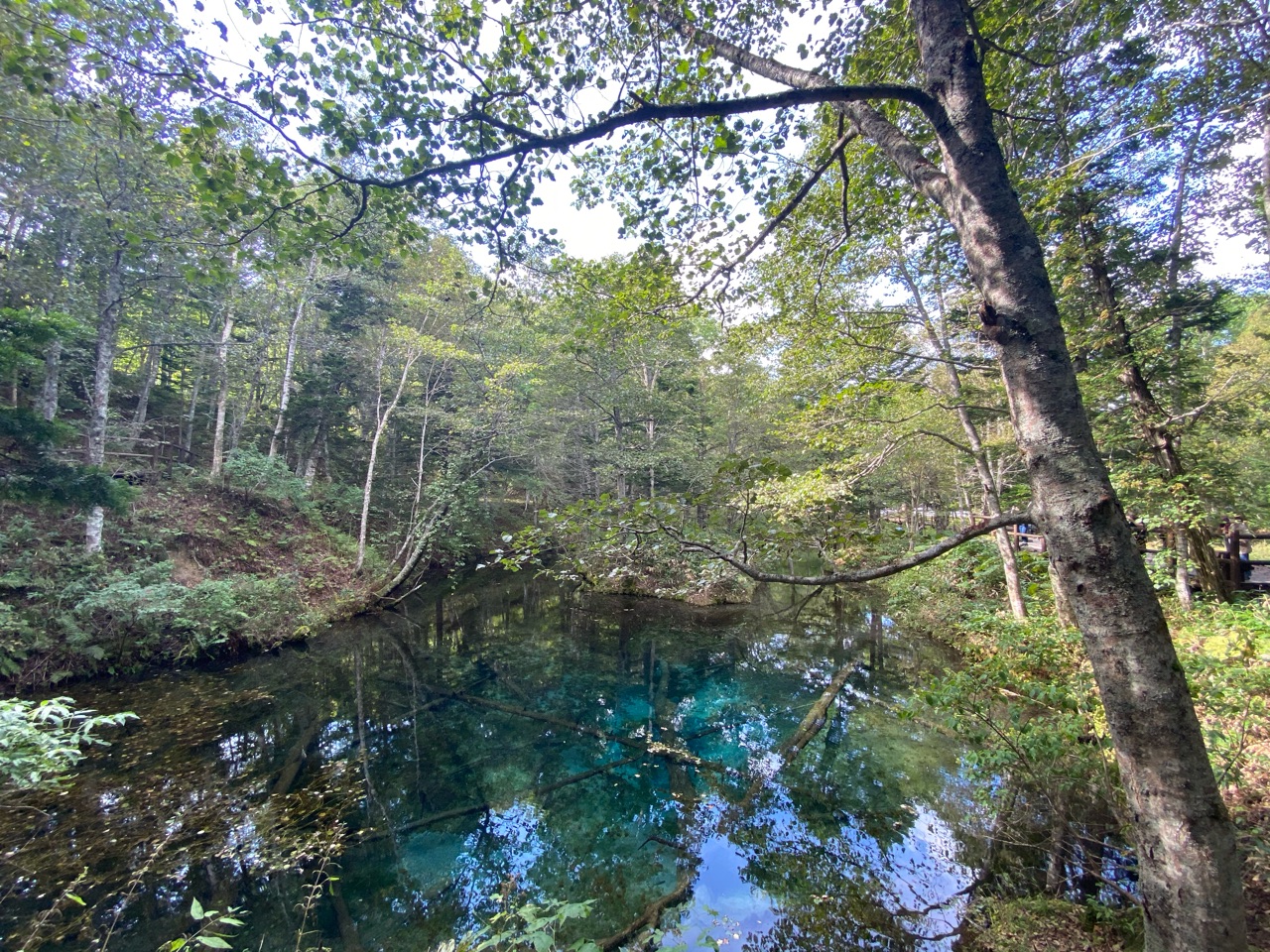 沈んでいる木が腐らずにコバルトブルーになっていて美しい!