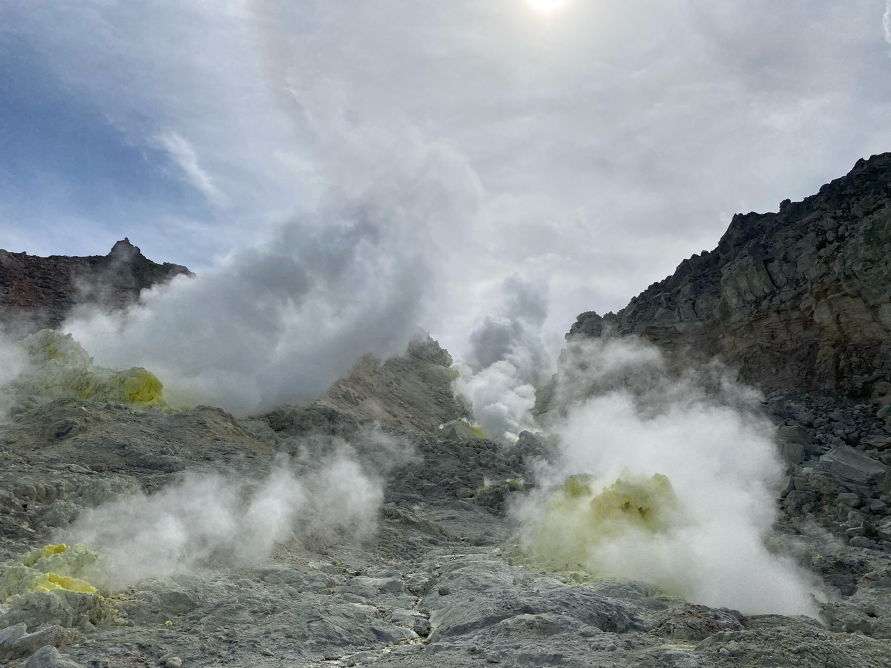 山岩から噴煙が出ていて戦隊モノの撮影にも適しているような迫力!