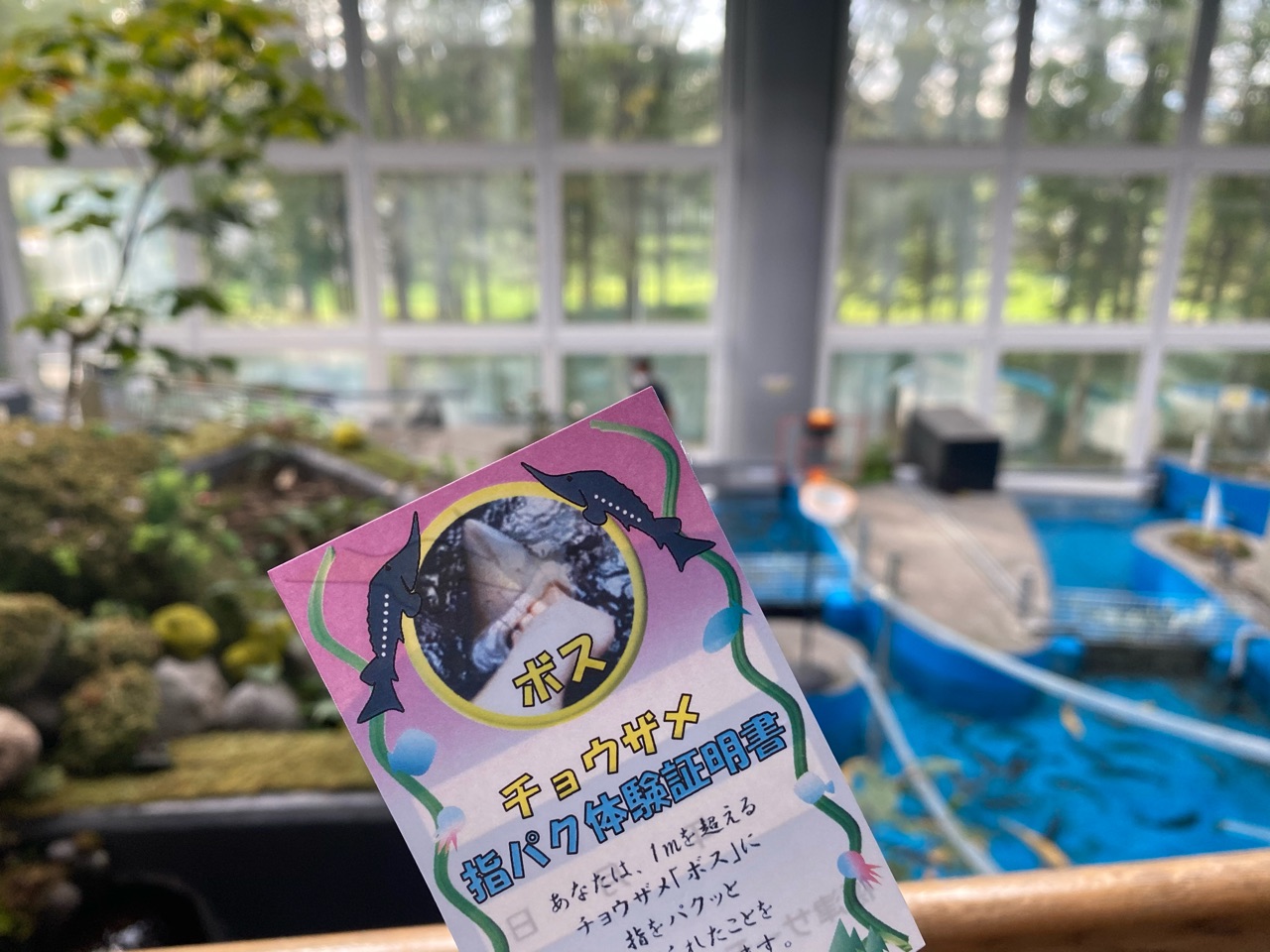 チョウザメのボスに指パクされた勇気の称号の証明書をいただきました!!!!!