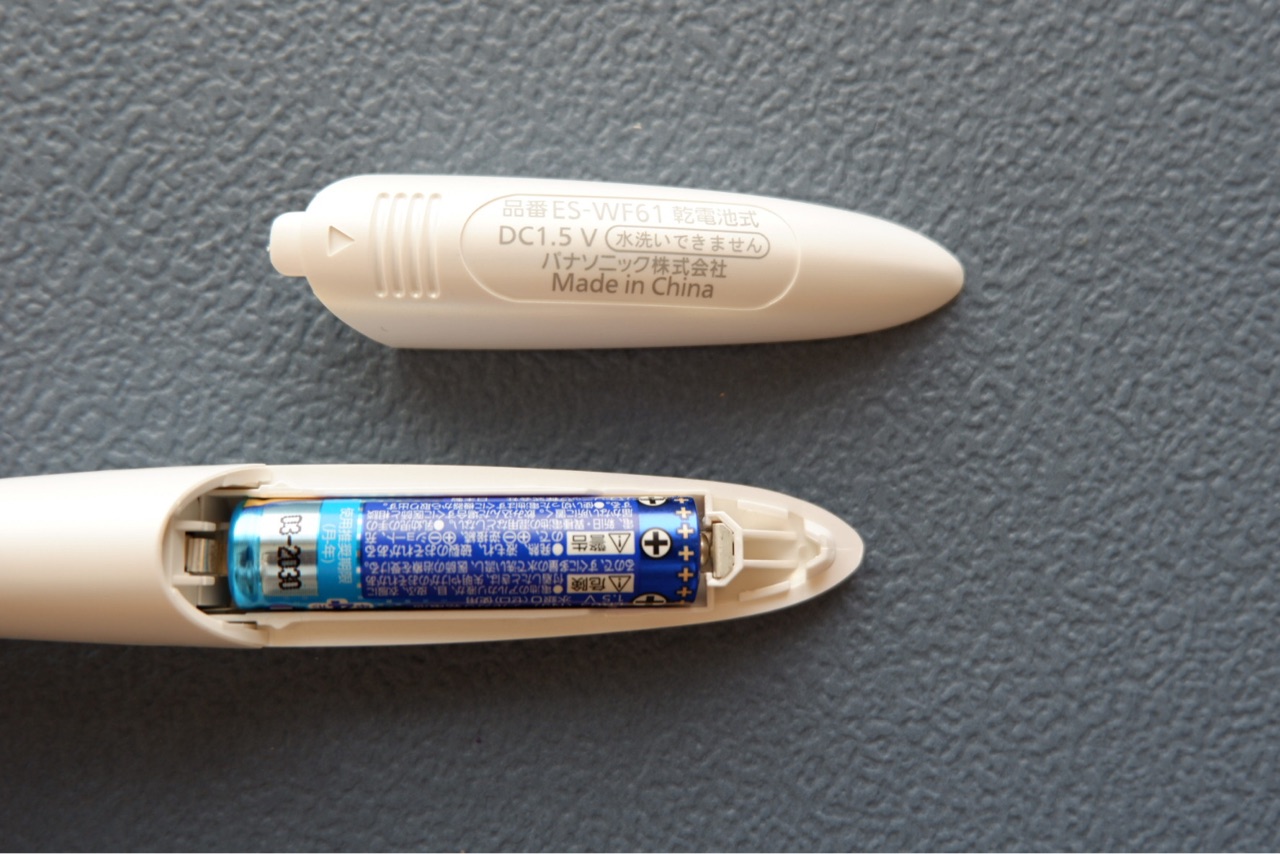 *説明書には週2回、1回5分使用として単4形アルカリ乾電池で約1か月分と記載あり