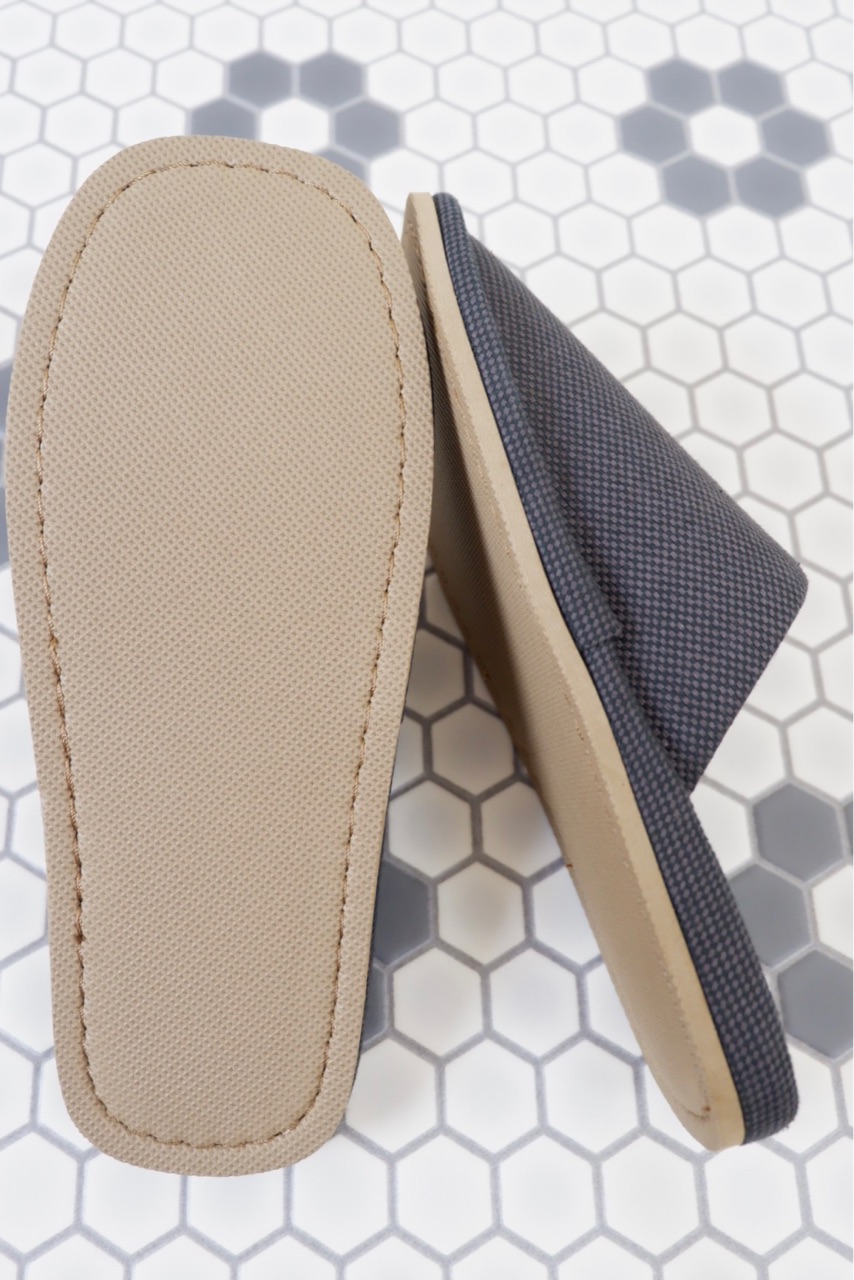 バスケット織の生地を使用したスリッパです。