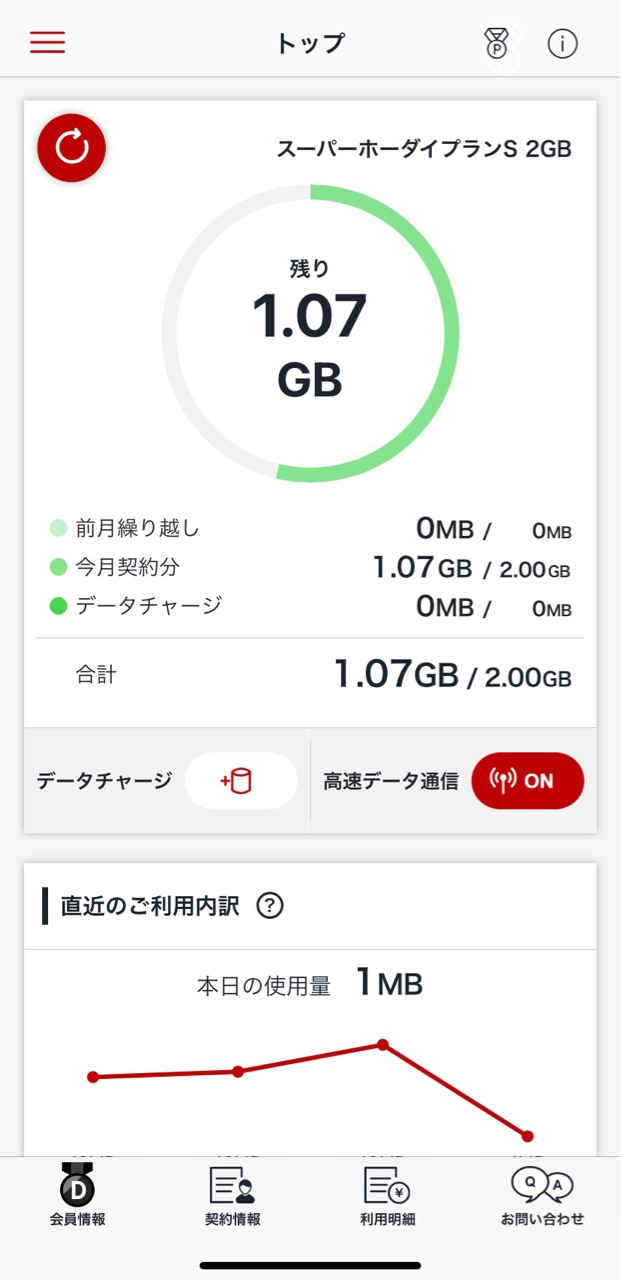 ↓ 新しい楽天アンリミットのデータ残!