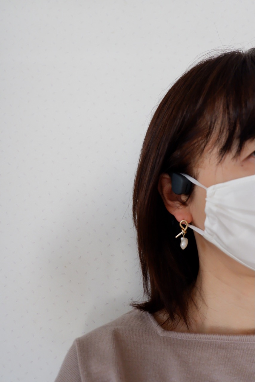 骨伝導イヤホン×ピアス×マスクでこんな感じになります♪