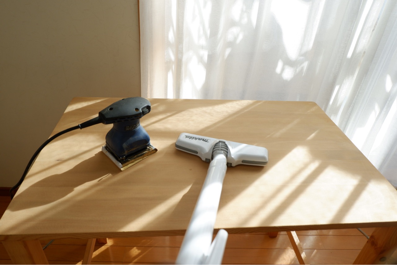 紙やすりを変えるたびに掃除機で粉塵を吸います。