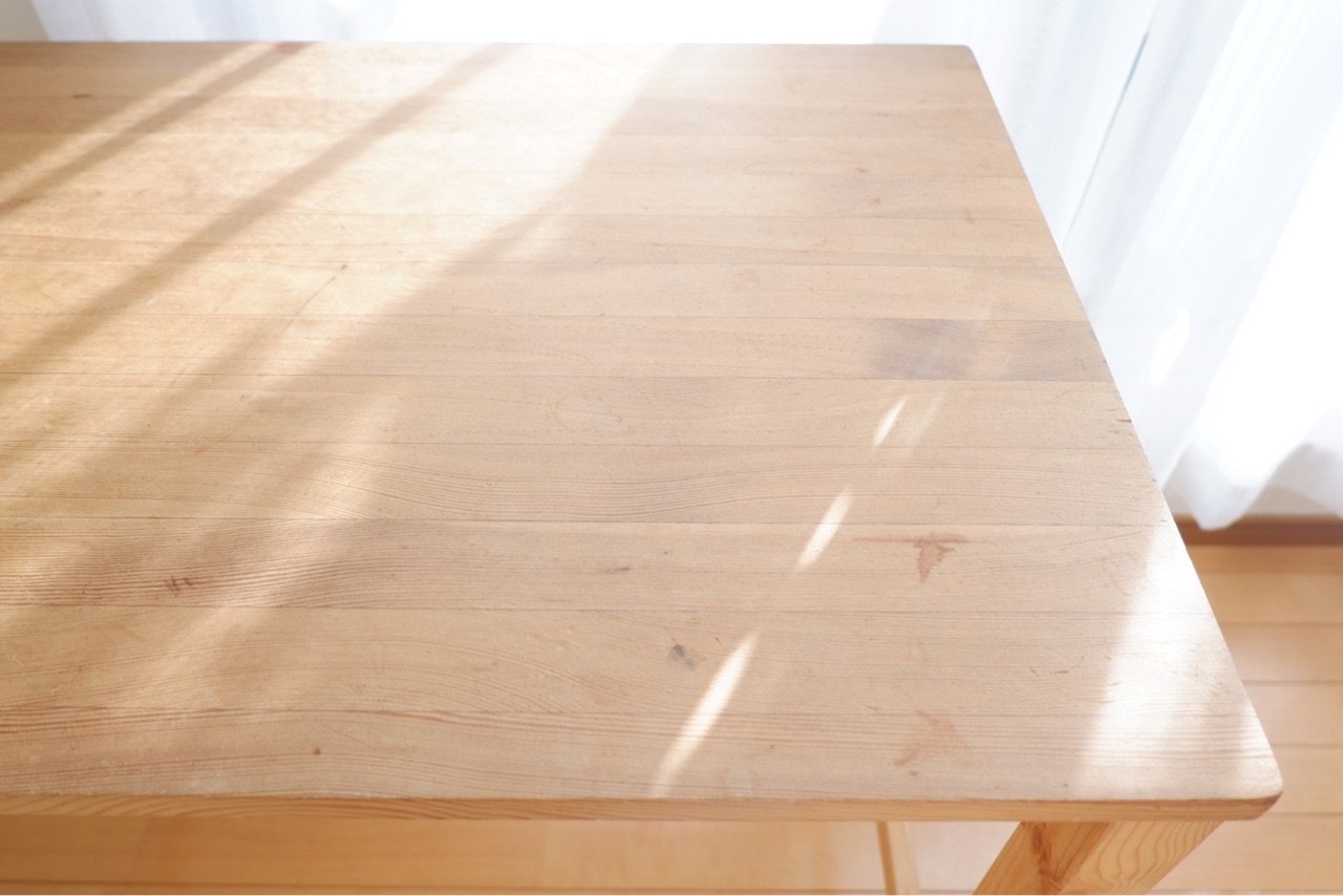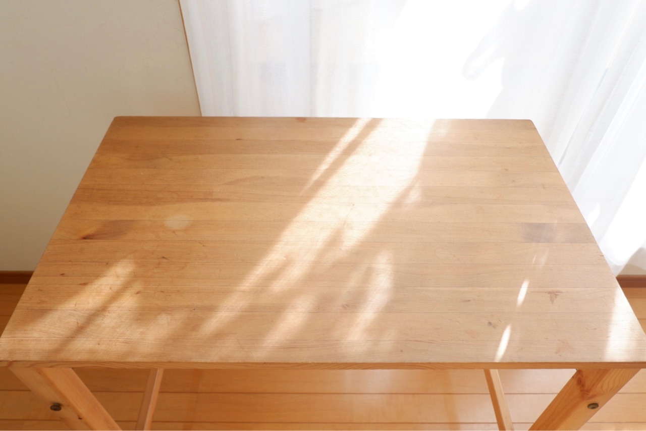 傷と汚れが気になる、11年目の無印良品の折りたたみテーブルをきれいにしました♪
