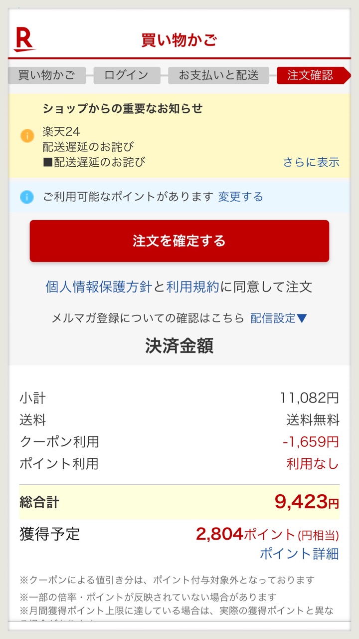 *注文確定前に「ご利用可能なクーポンがあります」を必ずチェックして選ぶこと