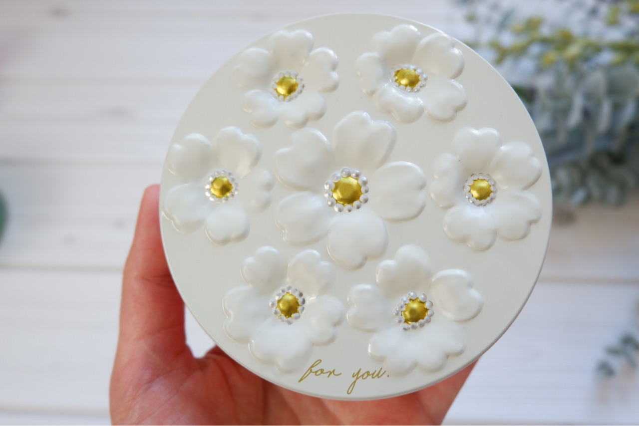 1番好みなのは、白い花びらにゴールドのめしべの花束の缶♪