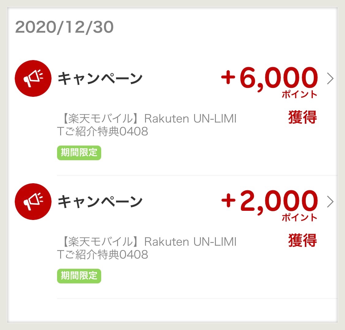 1か月前にご紹介キャンペーン分のポイントも付いていました♪