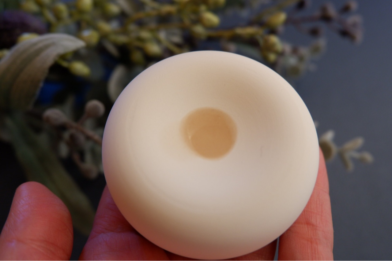 真ん中にくぼみが付いていてエッセンシャルオイルを2滴垂らすと