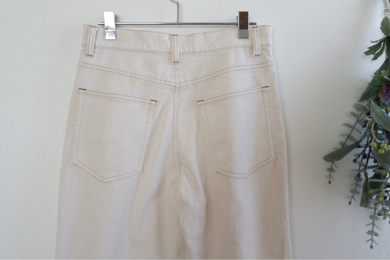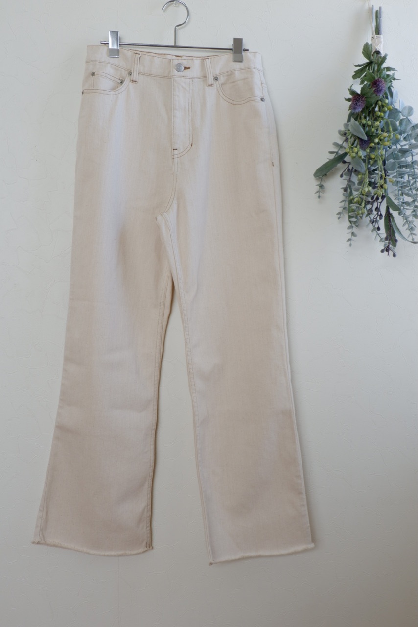 シンプルなデザインながらも緩やかに広がるフレアシルエットで、大人カジュアルな着こなしに映えるデニムパンツ。