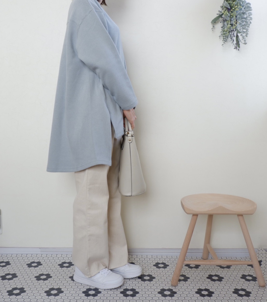 サイドに大きく入ったスリットはレイヤードがしやすく、着こなしの幅が広がる嬉しいデザインです。