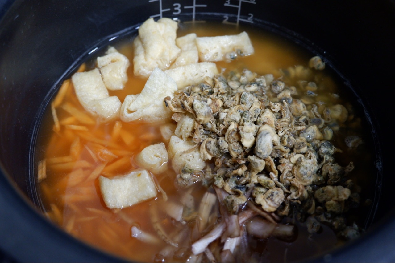 「「しじみ」でしじみご飯♪しじみ、人参、ゴボウ、油揚げ、昆布。