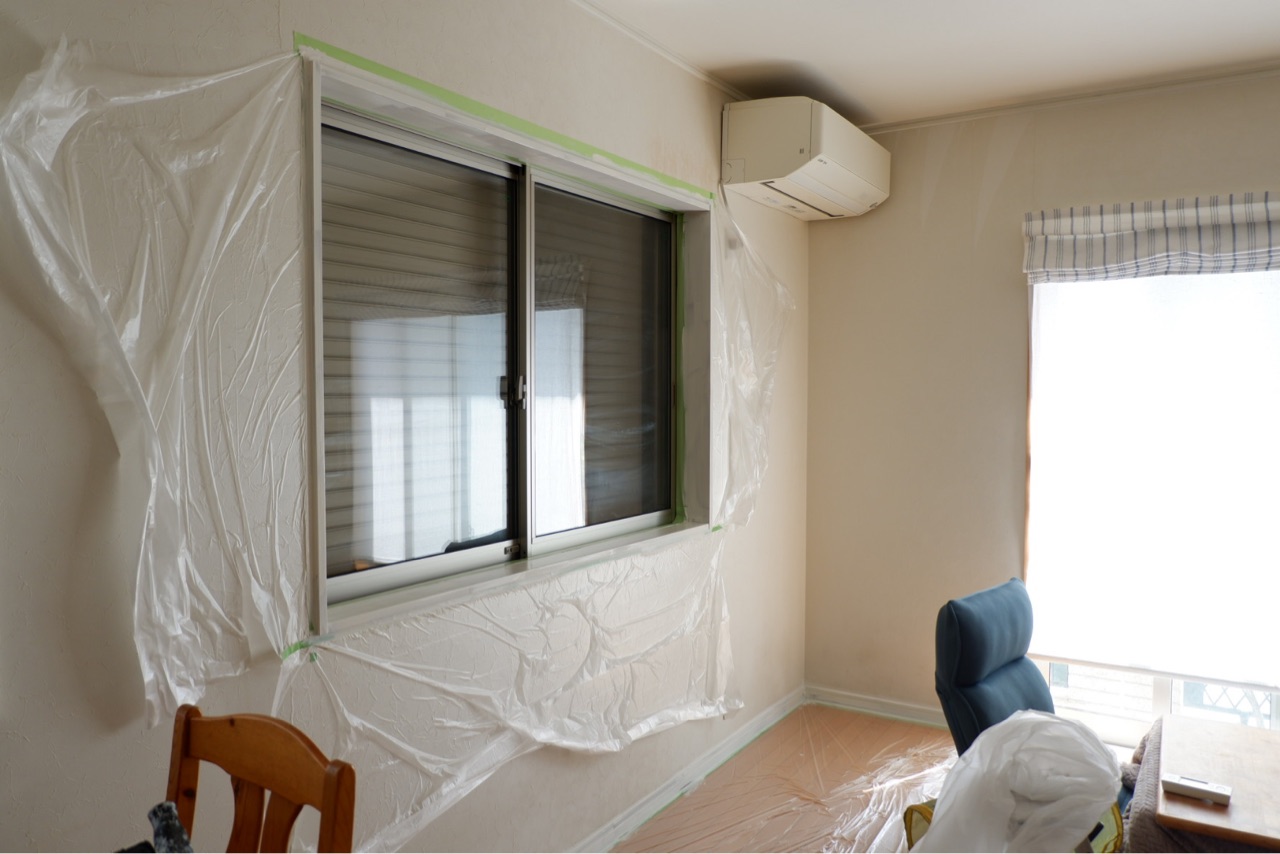 今日はここの窓枠と巾木をペイント中♪