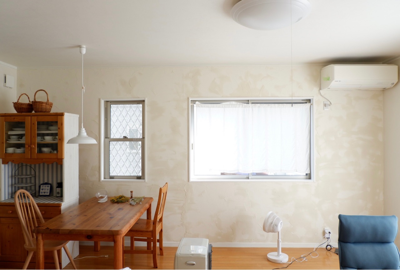 ダイニングからリビングの1面にペンキではなくて漆喰を塗ってみました♪