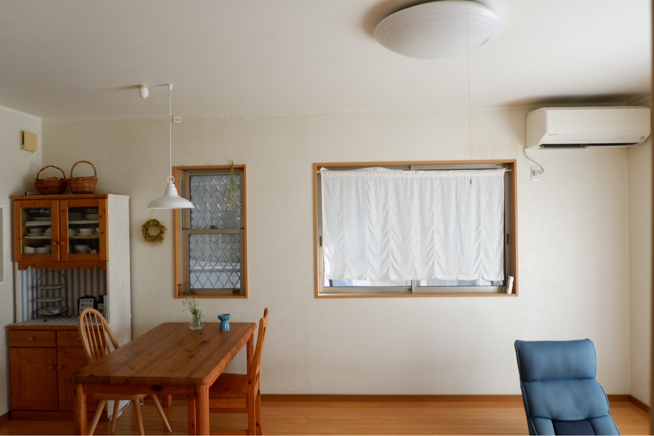 (窓枠のペンキが養生テープで少し剥がれました。またペイントします)