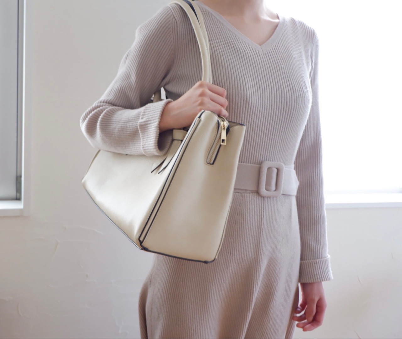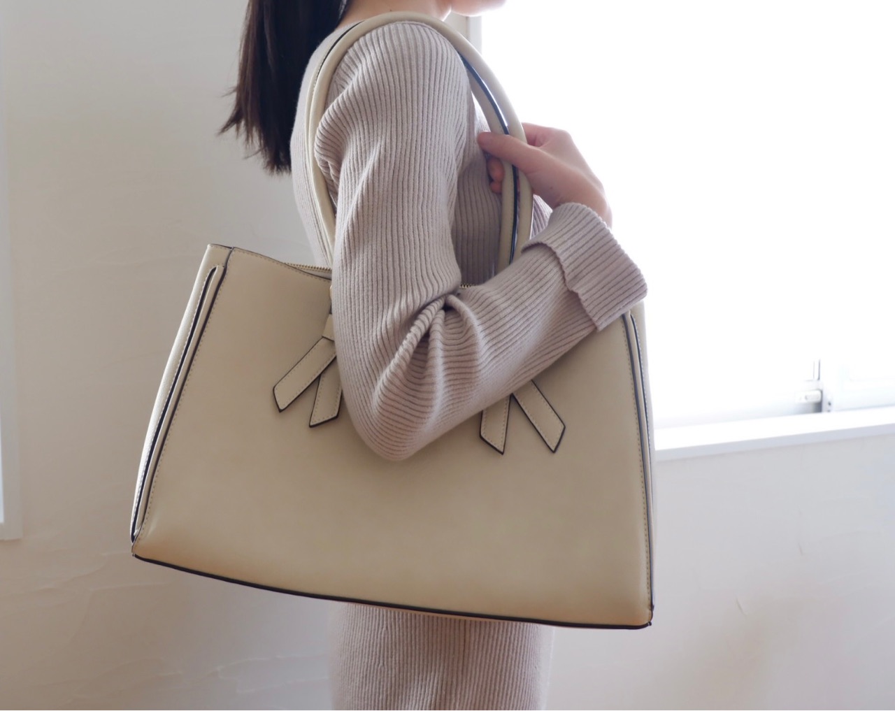 このベージュ寄りのホワイトバッグがとても気に入って通勤に大活躍★