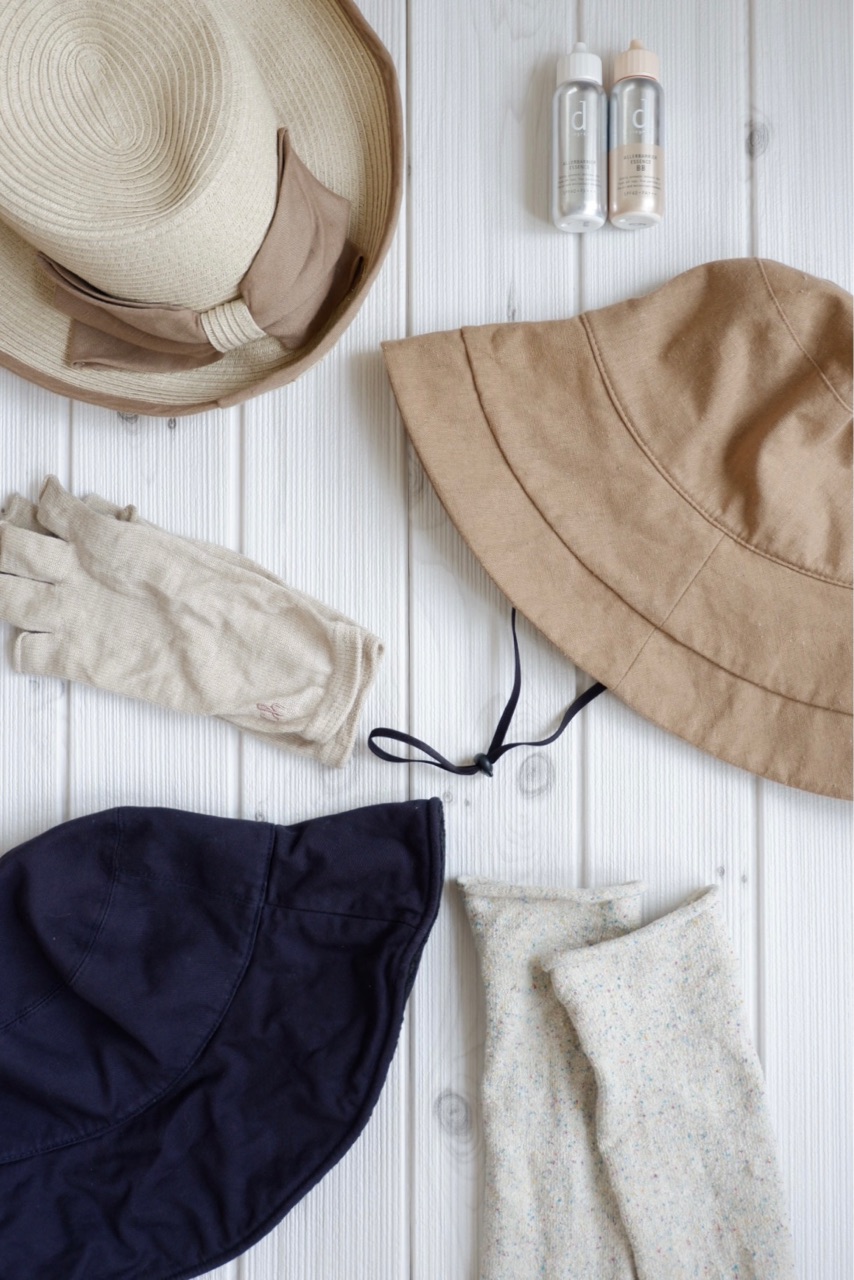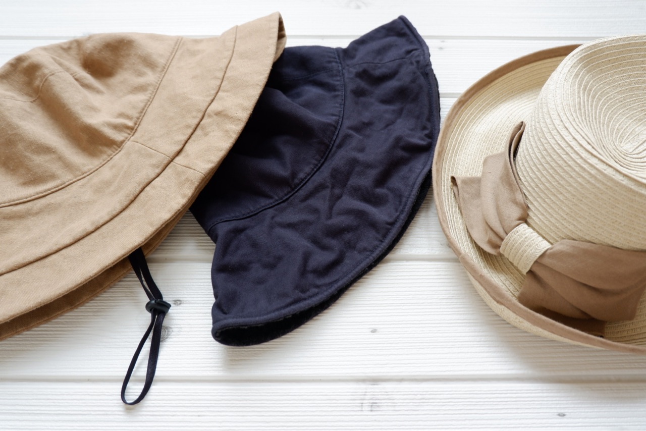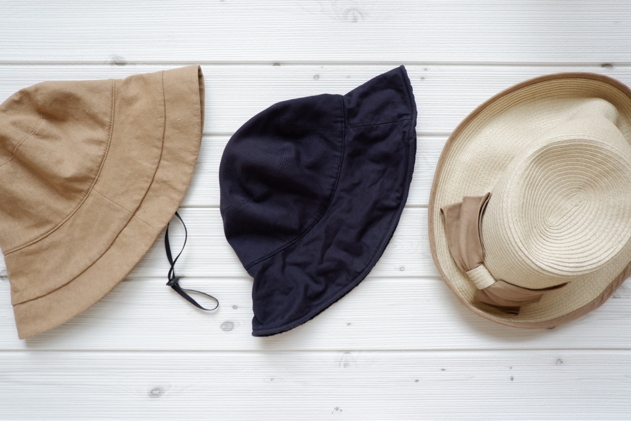 春先はネイビーの帽子を愛用していたけれど