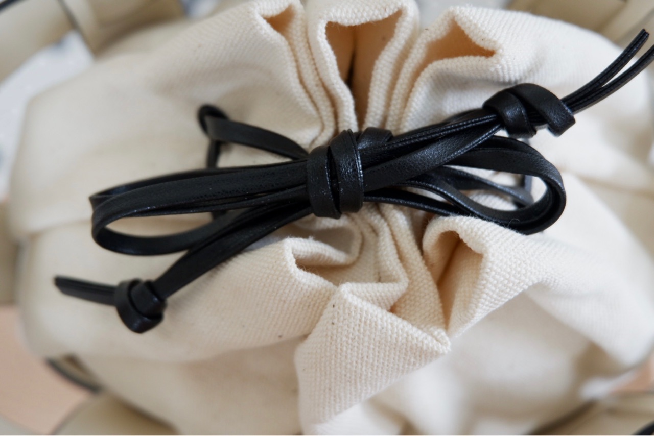 INしている巾着のヒモは合成皮革?