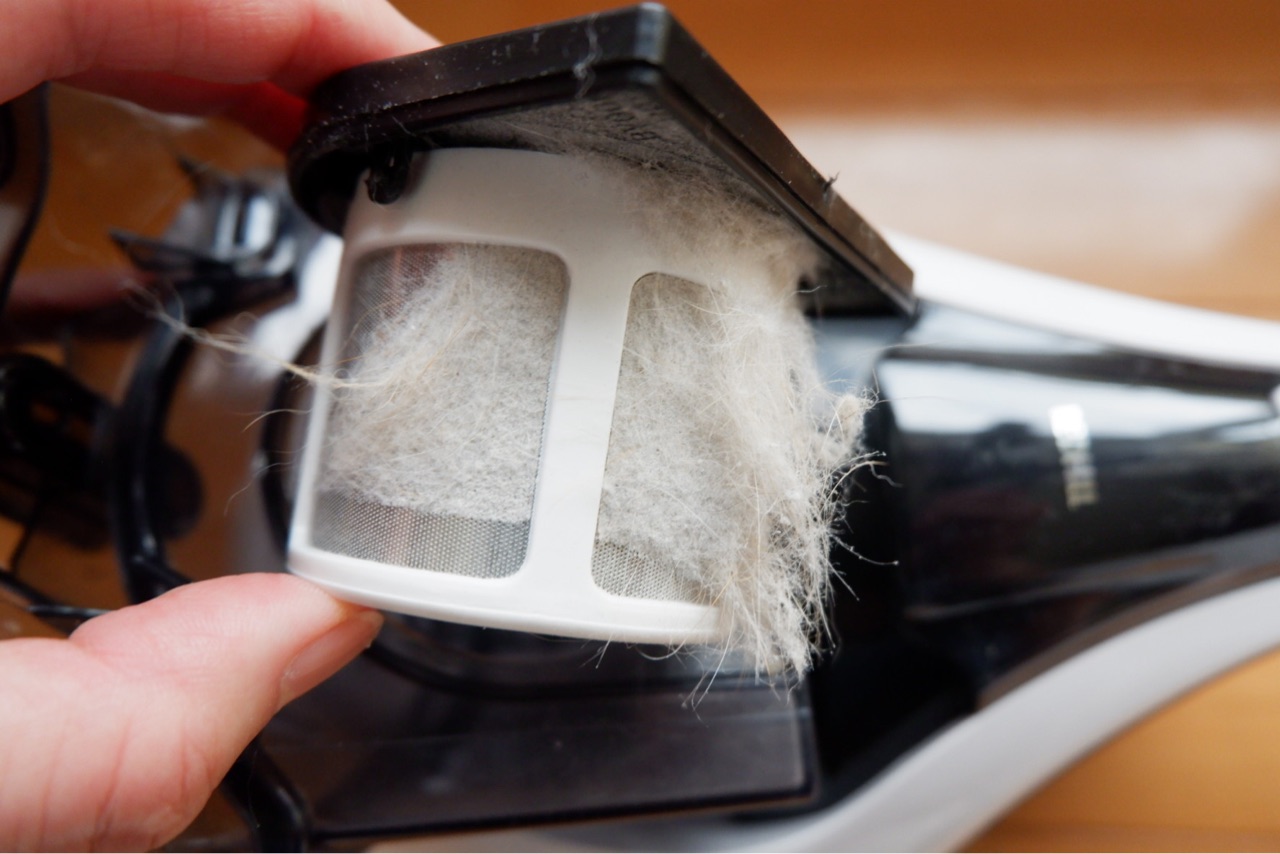 悪天候続きのため、シーツの上から布団クリーナーで掃除してみました。