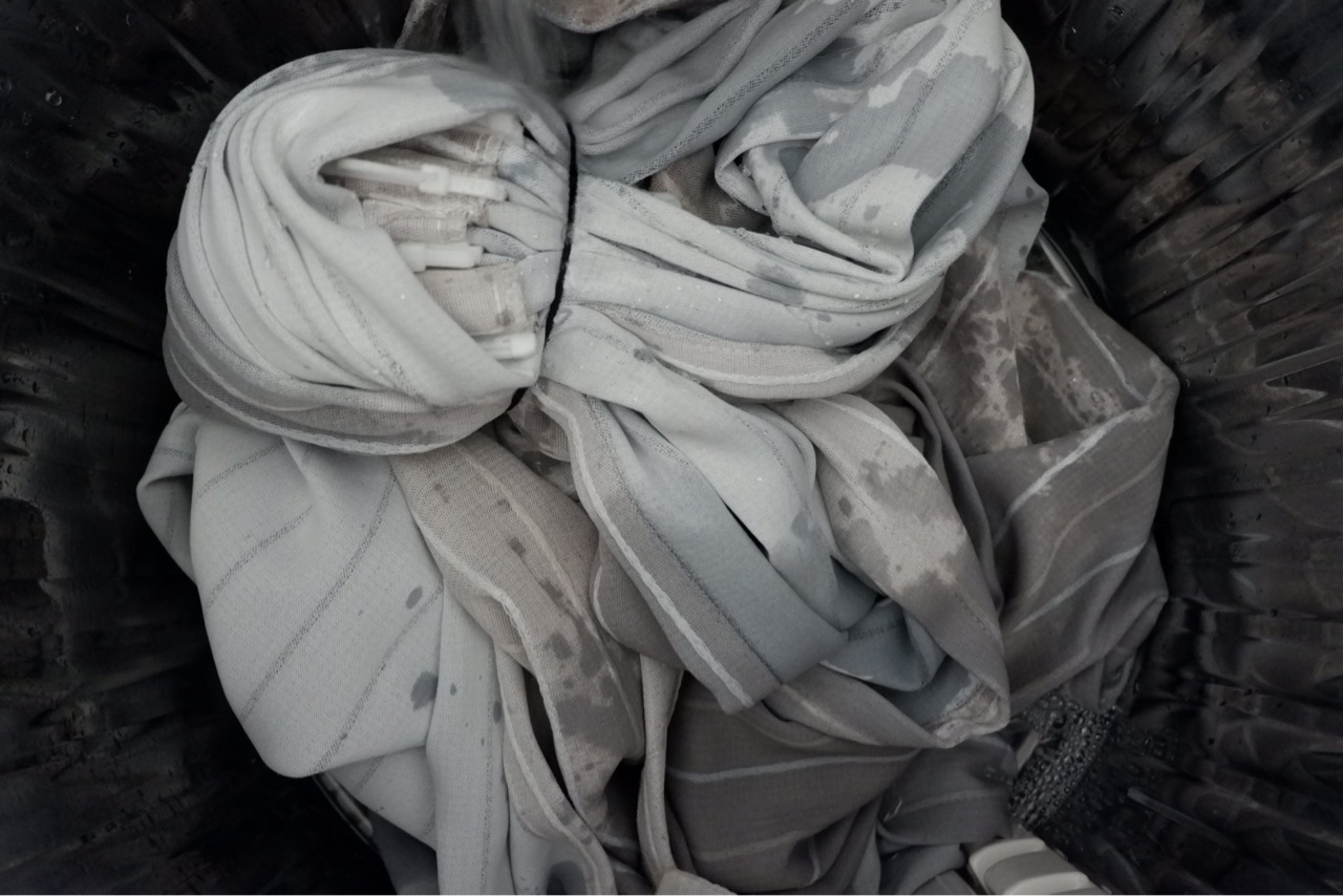 カーテンは、フックを付けたままゴムで中に入れこんで丸洗い!