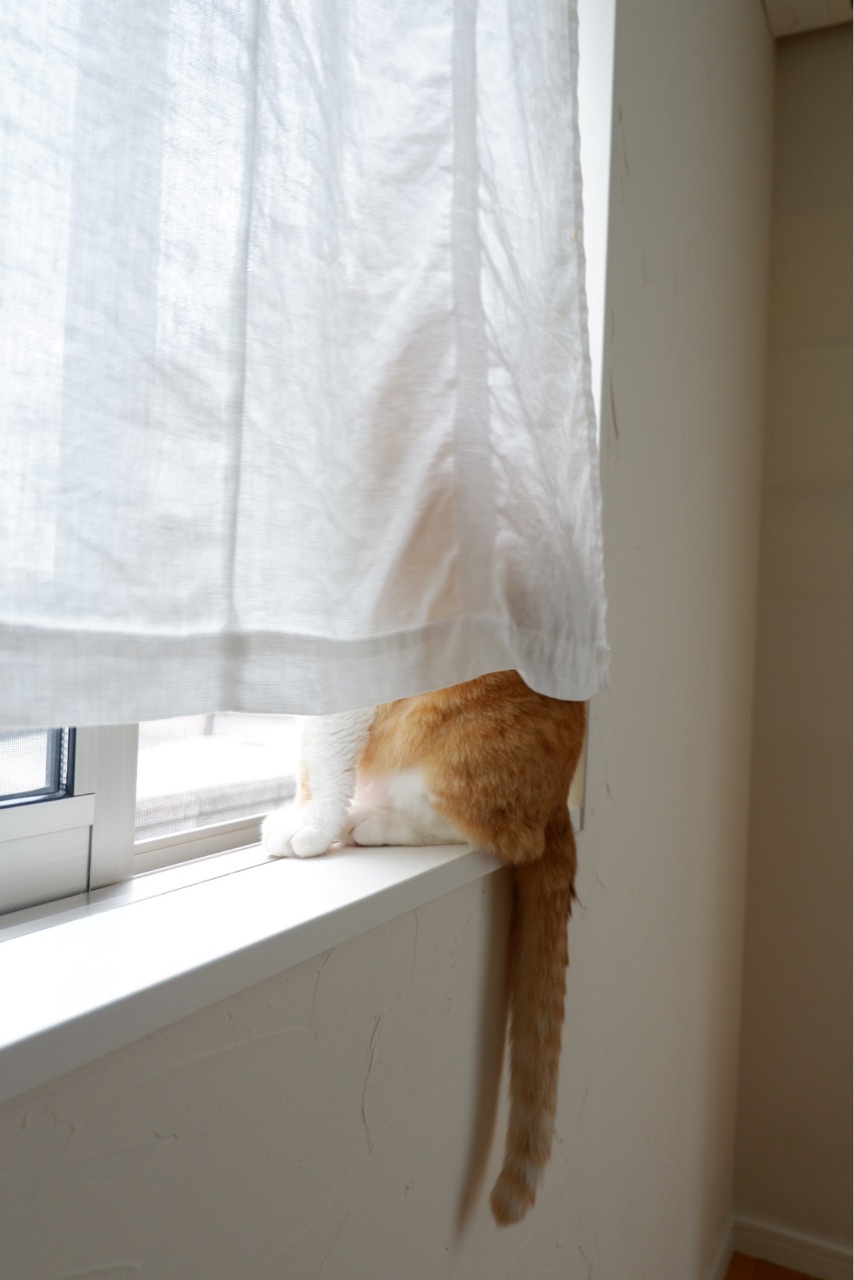 ガッチャンのためにも布製のカーテンを採用し続けようと思いました。