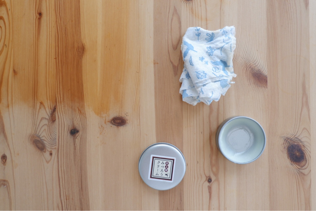 みつろうクリーム塗布|ダイニングテーブルDIY
