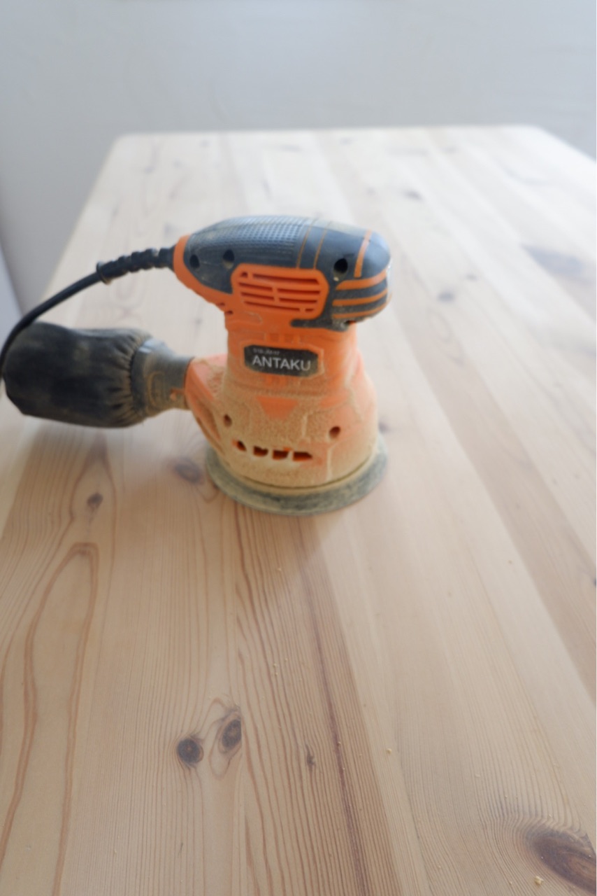 サンダーで削る|ダイニングテーブルDIY