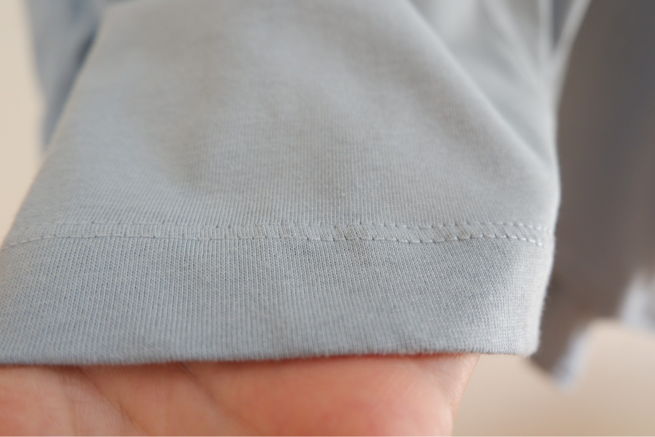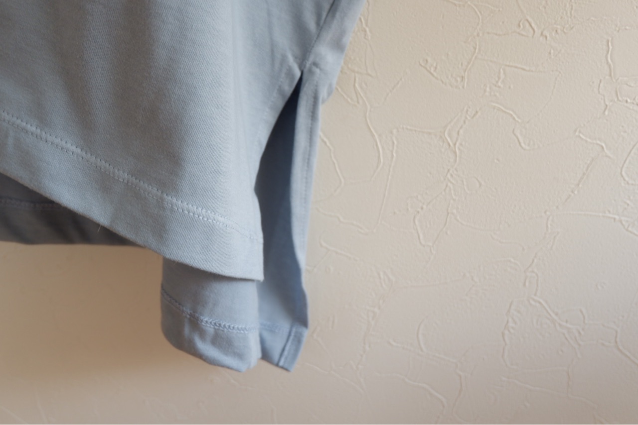 プレーティング天竺で肌触りがサラッとした、これからの季節にぴったりなTシャツです。生地がしっかりとしているのが伝わるでしょうか!