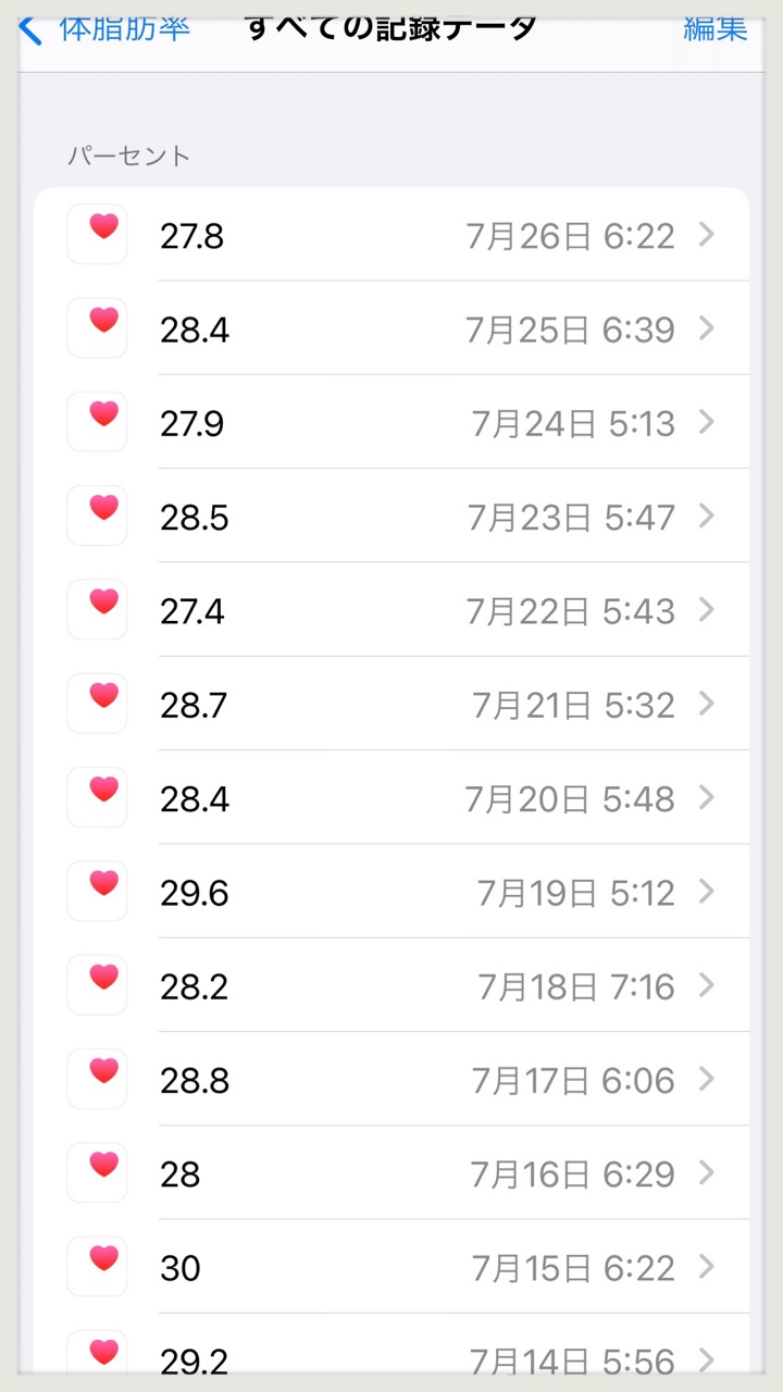 26日間で、体脂肪率は30.9→27.8へ!