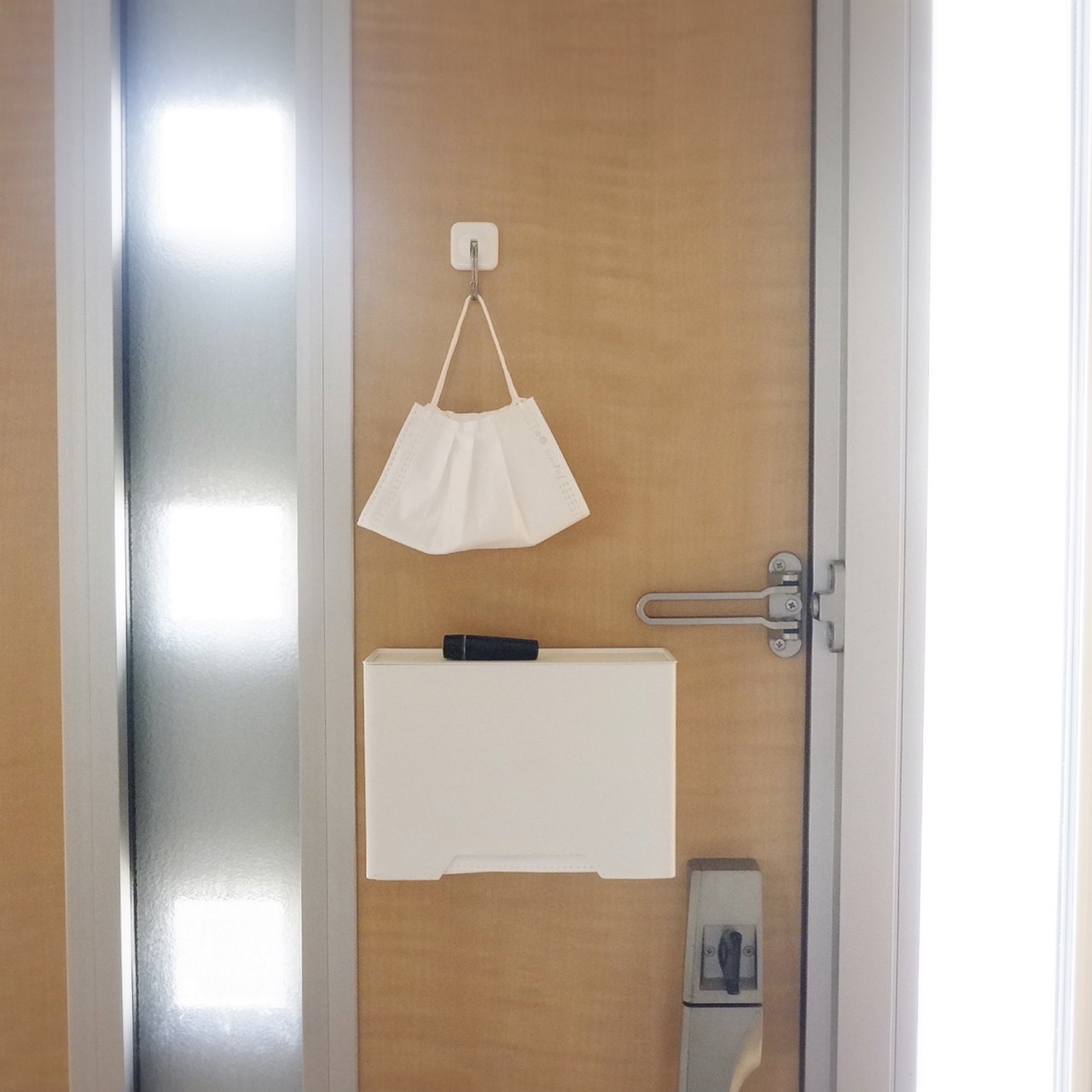 平日は、私の不織布マスク&インナーシルクマスクをセットにしてドアに掛けることに♪